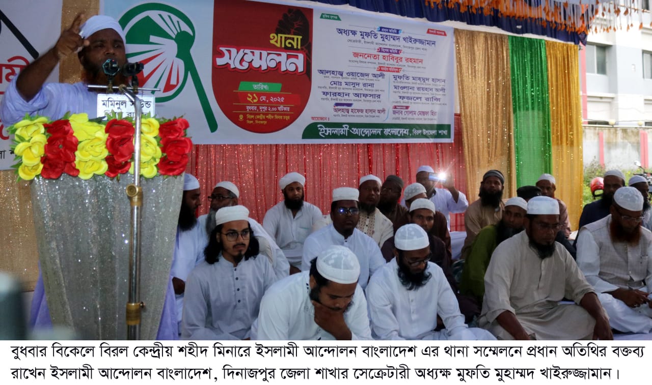 বুধবার বিকেলে বিরল কেন্দ্রীয় শহীদ মিনারে সম্মেলনে প্রধান অতিথির বক্তব্য রাখেন ইসলামী আন্দোলন বাংলাদেশ দিনাজপুর জেলা শাখার সেক্রেটারী অধ্যক্ষ মুফতি মুহাম্মদ খাইরুজ্জামান।