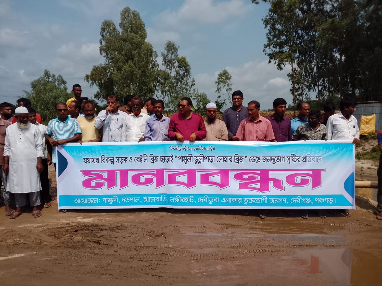 বিকল্প ব্যবস্থা ছাড়াই সেতু ভাঙায় জনদুর্ভোগ, দেবীগঞ্জে বেইলি ব্রিজ নির্মাণের দাবিতে মানববন্ধন