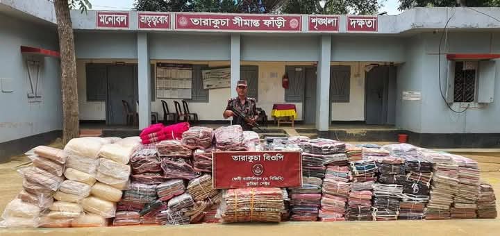 জব্দকৃত মালামালের মধ্যে রয়েছে ভারতীয় শাড়ী, লেহেঙ্গা, থ্রীপিস, কাশ্মিরী শাল, থান কাপড় ও ইনজেকশান।