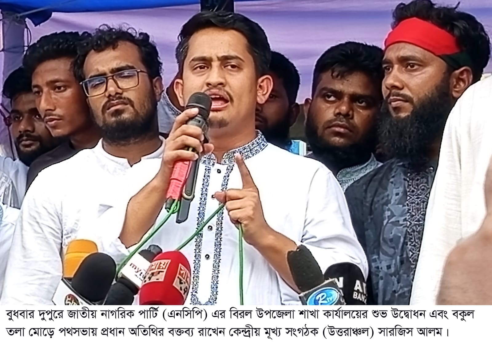 বুধবার দুপুরে জাতীয় নাগরিক পার্টি (এনসিপি) এর বিরল উপজেলা শাখা কার্যালয়ের শুভ উদ্বোধন এবং বকুল তলা মোড়ে পথসভায় প্রধান অতিথির বক্তব্য প্রদানকালে কেন্দ্রীয় মূখ্য সংগঠক (উত্তরাঞ্চল) সারজিস আলম বলেন, আপনাদের কথা শুনতে আপনাদের কথাগুলো নিতি নির্ধারক মহলে জানাতে এবং আপনাদের কথাগুলো আগামীর বাংলাদেশে বলতে আমরা আপনাদের কাছে এসেছি। বিগত ১৬ বছরে উত্তরাঞ্চলকে সবসময় সকল অধিকার থেকে বঞ্চিত করা হয়েছে। দক্ষিণাঞ্চলে একটা পৌরসভায় যে উন্নয়ন বরাদ্দ দেওয়া হতো উত্তরাঞ্চলে একটি জেলাতেও সে পরিমাণ বরাদ্দ দেওয়া হতো না। দক্ষিণাঞ্চলে একটি এক্সপ্রেসওয়ে করতে যে পরিমাণ বরাদ্দ দেওয়া হতো উত্তরাঞ্চলের পুরো রংপুর বিভাগে সে পরিমাণ বরাদ্দ দেওয়া হতো না। এই উন্নয়ন বৈষম্যের মধ্যদিয়ে বিগত এক যুগ অতিবাহিত হয়েছে। উত্তরাঞ্চলে কোথায় কি সমস্যা? সেগুলো রাজপথ থেকে মাঠে ঘাটে হেঁটে দেখে সকল সমস্যা থেকে উত্তরণের জন্য আমরা সংশ্লিষ্ট মন্ত্রণালয়ের উপদেষ্টার কাছে বলার জন্য আজকে বিরলে এসেছি।