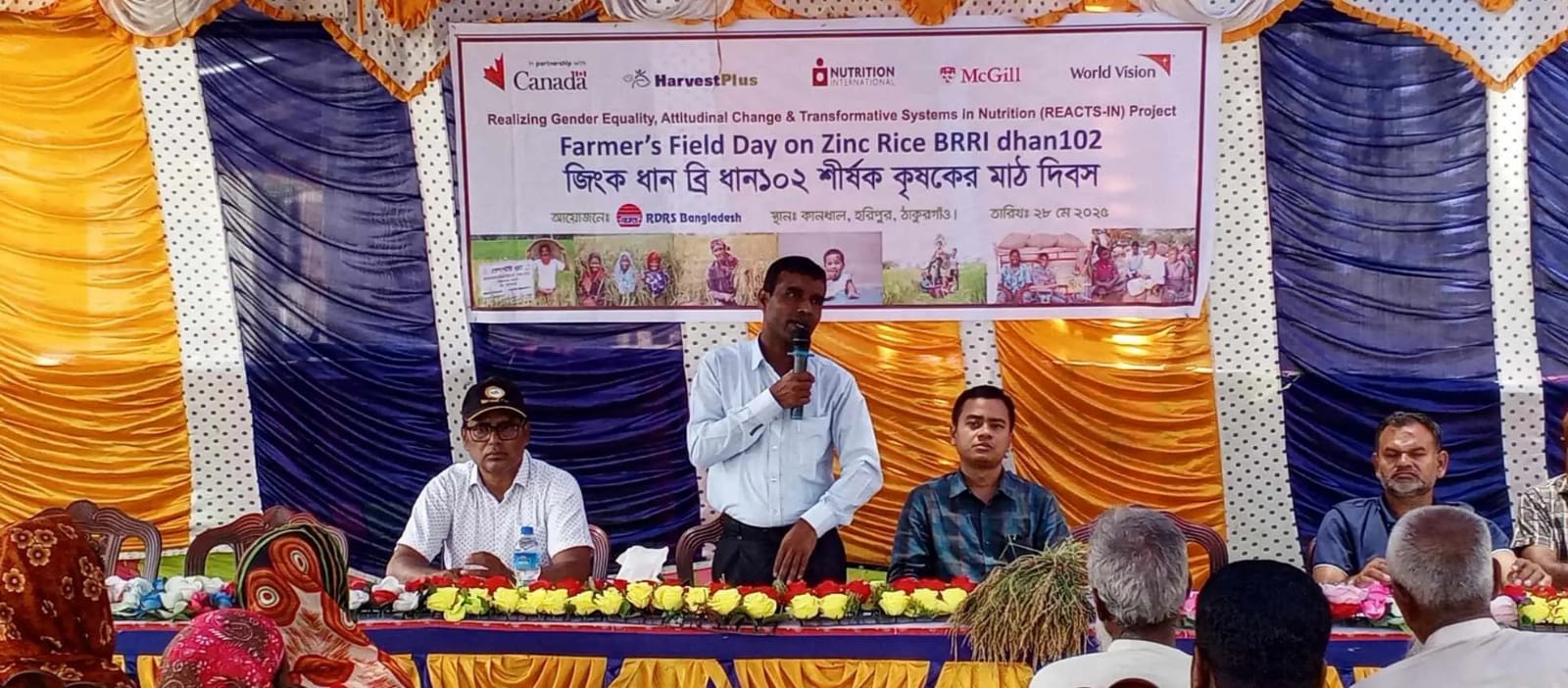 রিএক্টস-ইন প্রকল্পটি কানাডা সরকারের অর্থায়নে, ওয়ার্ল্ড ভিশন, হারভেস্টপ্লাস, নিউট্রিশন ইন্টারন্যাশনাল এবং ম্যাক গ্রিল বিশ্ববিদ্যালয় কনসোর্টিয়াম এর মাধ্যমে অন্যান্য তিনটি দেশের মতো বাংলাদেশের ঠাকুরগাঁও জেলার হরিপুর উপজেলায় বাস্তবায়িত হচ্ছে। এই প্রকল্পের হারভেস্টপ্লাসের কার্যক্রম গুলি আরডিআরএস বাংলাদেশ ও ইএসডিও এর মাধ্যমে বাস্তবায়িত হচ্ছে বলে জানান প্রকল্প বাস্তবায়নকারী প্রতিষ্ঠানের কর্মকর্তারা।