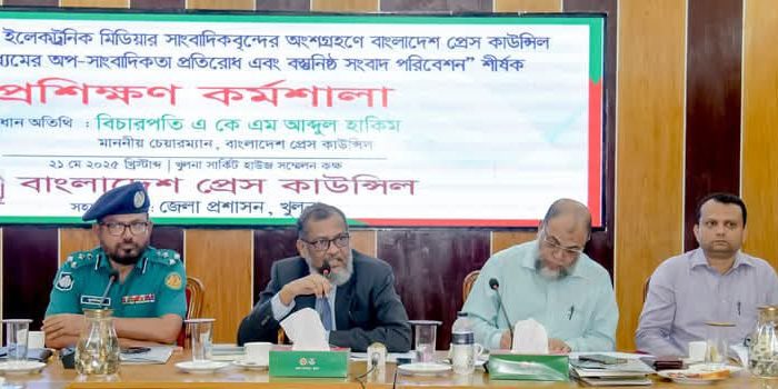 বাংলাদেশ প্রেস কাউন্সিল আয়োজিত ‘গণমাধ্যমের অপ-সাংবাদিকতা প্রতিরোধ এবং বস্তুনিষ্ঠ সংবাদ পরিবেশন’ শীর্ষক প্রশিক্ষণ কর্মশালা বুধবার সকালে খুলনা সার্কিট হাউজের সম্মেলনকক্ষে অনুষ্ঠিত হয়। এতে প্রধান অতিথি ছিলেন বাংলাদেশ প্রেস কাউন্সিলের চেয়ারম্যান