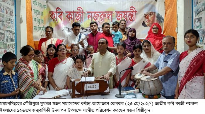 ময়মনসিংহের গৌরীপুরে যুগান্তর স্বজন সমাবেশের বর্ণাঢ্য আয়োজনে রোববার (২৫ মে/২০২৫) জাতীয় কবি কাজী নজরুল ইসলামের ১২৬তম জন্মবার্ষিকী উদযাপন করা হয়েছে। এ উপলক্ষে আলোচনা সভা, কবিতা আবৃত্তি ও সংগীত পরিবেশন অনুষ্ঠিত