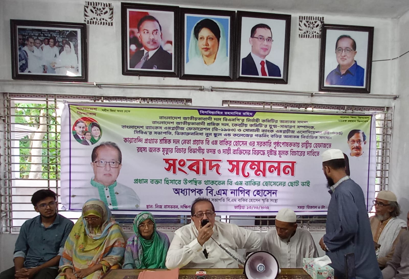 বি.এম. বাকির হোসেনের রহস্যজনক, মৃত্যুর বিচারের দাবিতে সংবাদ সম্মেলন