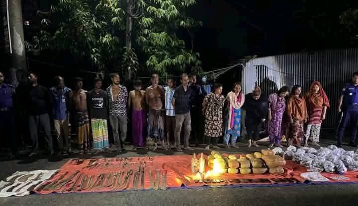 ফরিদপুর সদর উপজেলার গুহ লক্ষ্মীপুর এলাকার রেলওয়ে বস্তিতে দীর্ঘদিন ধরে চলা মাদক কারবার ও সন্ত্রাসী কার্যক্রমের বিরুদ্ধে সেনাবাহিনী ও পুলিশের যৌথ অভিযানে ১৫ জনকে আটক করা হয়েছে। অভিযানে বিপুল পরিমাণ মাদক, দেশীয় অস্ত্র ও অন্যান্য অপরাধ সংশ্লিষ্ট সরঞ্জাম উদ্ধার করা হয়। আটককৃতদের মধ্যে আলোচিত মাদক চক্রের নেত্রী শিল্পী বেগম (৩০) এবং তার পরিবারের সদস্যরাও রয়েছেন।