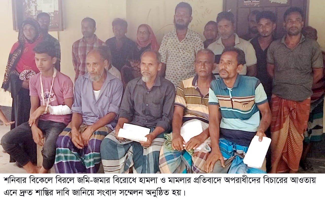 বিরলে জমি-জমার বিরোধে হামলা ও মামলার প্রতিবাদে সংবাদ সম্মেলন অনুষ্ঠিত হয়েছে। হামলাকরে গুরুত্বর রক্তাক্ত জখমকারীদের বিচারের আওতায় এনে দ্রুত শাস্তির দাবি জানিয়েছেন ভূক্তভোগীগণ।