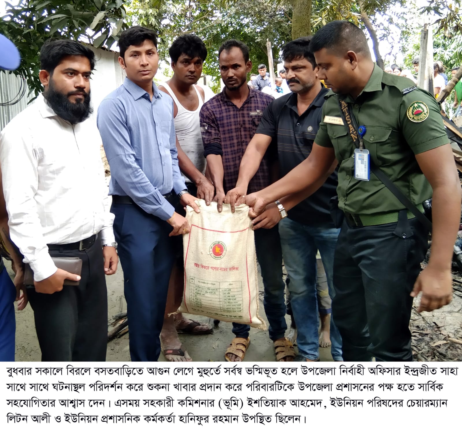 বিরলে বসতবাড়িতে আগুনে সর্বস্ব ভস্মিভূত ॥ উপজেলা প্রশাসনের সহায়তা প্রদান