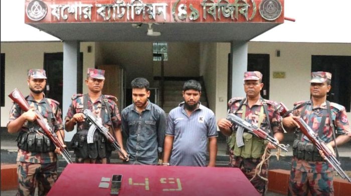 যশোরে সাড়ে চার কোটি টাকা মূল্যের ২৩টি স্বর্ণের বারসহ দুই পাচারকারীকে আটক করেছে বর্ডার গার্ড বাংলাদেশ (বিজিবি)। ভারত পাচারের উদ্দেশ্যে স্বর্ণগুলো সীমান্ত এলাকায় নিয়ে যাওয়া হচ্ছিল বলে জানা গেছে। শনিবার