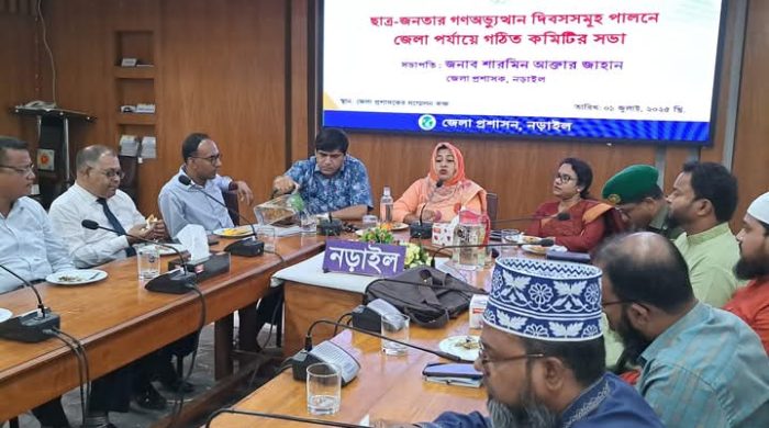 ছাত্র জনতার গণঅভ্যুত্থান দিবসসমূহ পালনে নড়াইলে জেলা পর্যায়ে গঠিত কমিটির সভা অনুষ্ঠিত হয়েছে। আজ মঙ্গলবার বেলা ১১ টায় জেলা প্রশাসকের সম্মেলন কক্ষে এই সভা অনুষ্ঠিত হয়। সভায় সভাপতিত্ব করেন নড়াইল