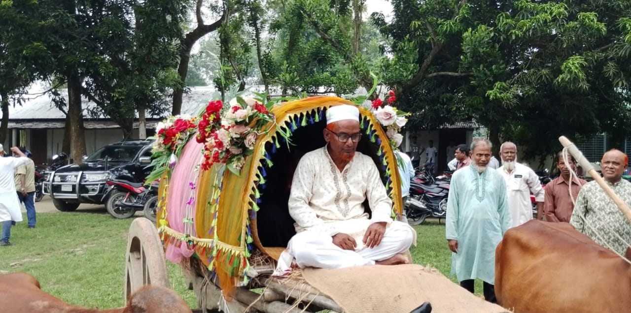 অনুষ্ঠানের শেষে গ্রামবাংলার ঐতিহ্যবাহী গরুর গাড়িতে করে অফিস সহকারী মমতাজুল ইসলামকে বিদায় জানানো হয়।