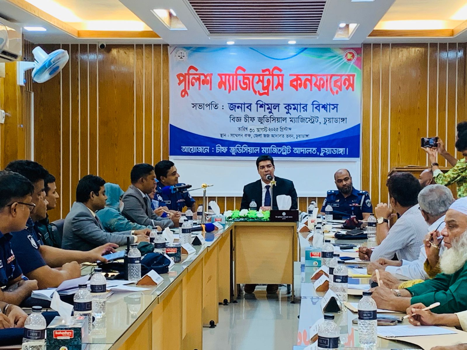 সভায় প্রধান বক্তা ছিলেন চীফ জুডিশিয়াল ম্যাজিস্ট্রেট শিমুল কুমার বিশ্বাস, যিনি বলেন, “দ্রুত সময়ের মধ্যে বিচারিক সেবা নিশ্চিত করতে হবে এবং সঠিক তদন্তের মাধ্যমে ন্যায়বিচার প্রতিষ্ঠা আমাদের মূল লক্ষ্য।” তিনি আরো বলেন, "আমরা চাই, বিচার প্রক্রিয়া যেন সহজ, সঠিক এবং স্বচ্ছ হয়, যাতে জনগণকে কোনো ধরনের হয়রানি না ভোগ করতে হয়।"