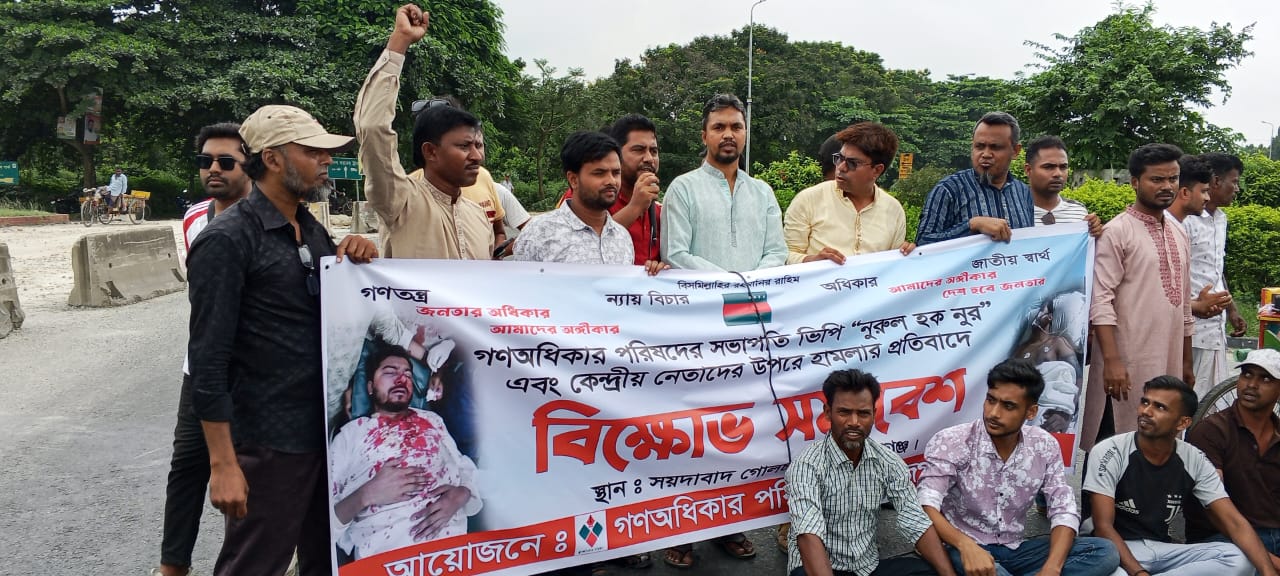 নুরের উপর হামলার প্রতিবাদে সিরাজগঞ্জে গণ অধিকার পরিষদের মহাসড়ক অবরোধ, বিক্ষোভ মিছিল