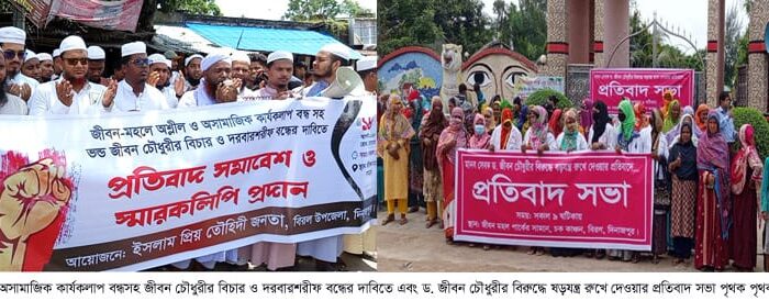 বিরলের জীবন-মহলে ও অসামাজিক কার্যকলাপ বন্ধসহ জীবন চৌধুরীর বিচার ও দরবারশরীফ বন্ধের দাবিতে এবং জীবন চৌধুরীর বিরুদ্ধে ষড়যন্ত্র রুখে দেওয়ার প্রতিবাদ সভা পৃথক পৃথকভাবে অনুষ্ঠিত হয়েছে। সোমবার সকাল ৯ টা