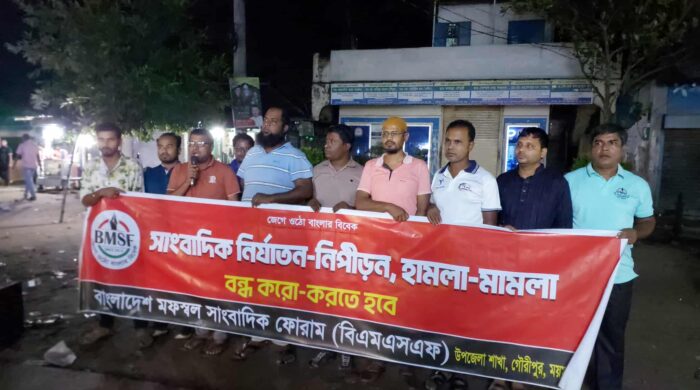 দৈনিক প্রতিদিনের কাগজ পত্রিকার গাজীপুর ব্যুরো প্রধান আসাদুজ্জামানকে জবাই করে হত্যা ও বাংলাদেশের আলো’র গাজীপুর প্রতিনিধি আনোয়ার হোসেনকে ধরে নিয়ে হাত-পা থেঁতলে দেয়ার প্রতিবাদে বাংলাদেশ মফস্বল সাংবাদিক ফোরাম (বিএমএসএফ) ময়মনসিংহের