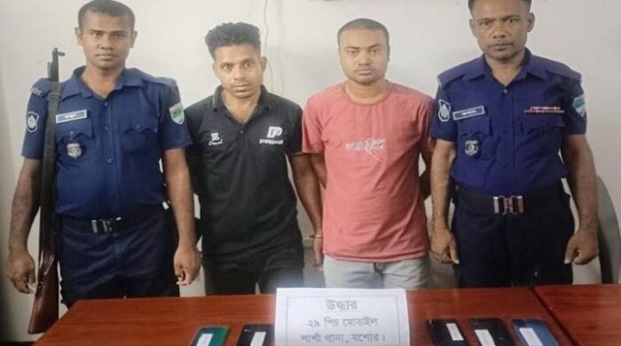যশোরের শার্শা উপজেলায় পুলিশের বিশেষ অভিযানে ২৯টি ভারতীয় পুরাতন অ্যান্ড্রয়েড মোবাইলসহ দুই চোরাকারবারিকে আটক করেছে পুলিশ। বৃহস্পতিবার বিকেলে শার্শা উপজেলা কলেজের সামনে থেকে তাদের আটক করা হয়। আটক ব্যক্তিরা হলেন, read more