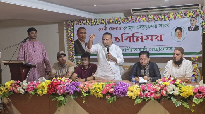 বাংলাদেশ জাতীয়তাবাদী স্বেচ্ছাসেবক দল ফেনী জেলা শাখার আয়োজনে রোববার ৩ আগস্ট বেস্ট ইন এর সম্মেলন কক্ষে তৃণমূলের আগামী রাজনীতি ও ভবিষ্যৎ পরিকল্পনা শীর্ষক মতবিনিময় সভা অনুষ্ঠিত হয়েছে। উক্ত মতবিনিময় সভায়