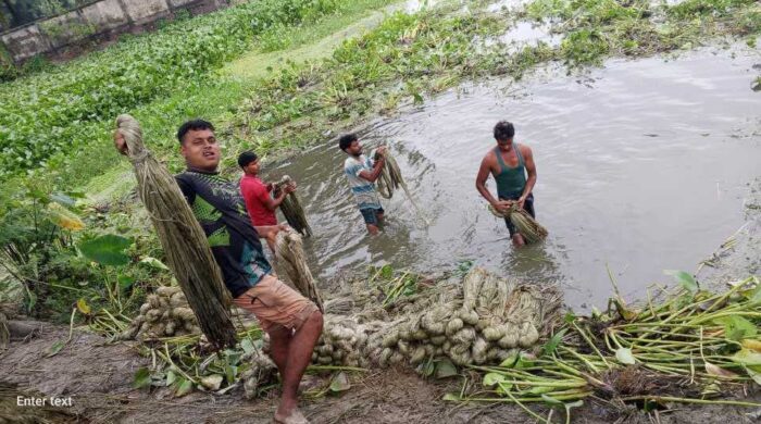 ঠাকুরগাঁওয়ের হরিপুরে শুরু হয়েছে বিভিন্ন মাঠের পাট কাটা। তবে খালবিলে ও মাঠে পানি না থাকায় পাট জাগ দেওয়া নিয়ে সংকটে পড়েছেন চাষিরা। রাস্তার পাশে খাল ও পুকুরের পানি দিয়ে পাট