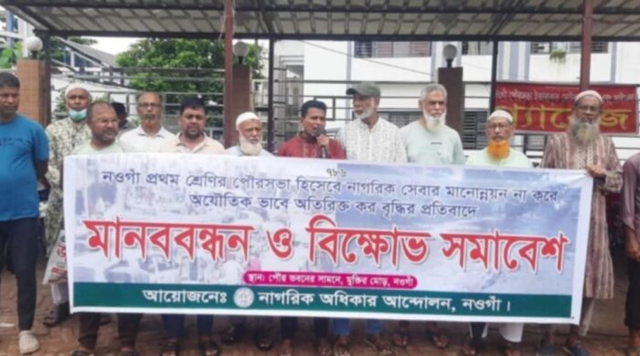 নওগাঁ পৌরসভার ৭ নং ওয়ার্ডের বাসিন্দা আব্দুল বাশির। এক বছর আগেও তার বাসাবাড়ির কর ছিল ৯০০ টাকা। এখন পৌরসভা থেকে নির্ধারণ করা হয়েছে ৯ হাজার টাকা। পানির সুবিধার্থে বাসায় বসিয়েছেন