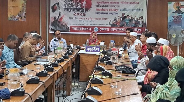 নড়াইলে “জুলাইয়ের মায়েরা” অভিভাবক সমাবেশ আলোচনা সভা ও প্রামান্য চিত্র প্রদর্শনী অনুষ্ঠিত হয়েছে। আজ শনিবার (২আগষ্ট) সকাল ১০টার দিকে জেলা প্রশাসকের সম্মেলন কক্ষে জেলা প্রশাসনের আয়োজনে এই অনুষ্ঠান অনুষ্ঠিত হয়।