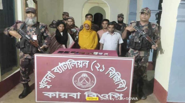 যশোরের শার্শায় কায়বা সীমান্ত দিয়ে অবৈধভাবে ভারতে যাওয়ার সময় ৭ বাংলাদেশিকে আটক করেছে বর্ডার গার্ড বাংলাদেশ (বিজিবি)। তাদের মধ্যে ৪ জন পুরুষ ও ৩ জন নারী। সোমবার (২৫ আগস্ট) রাত