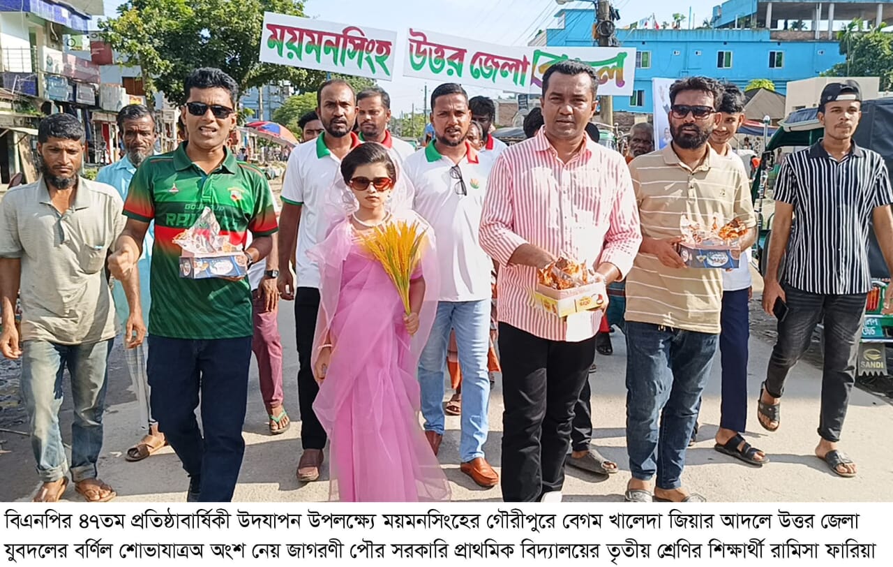ক্ষুদে খালেদাকে দেখতে উৎসুক জনতার ভিড়। সর্বসাধারণ ও দলীয় নেতাকর্মীদের মাঝে মিষ্টি বিতরণ। শহীদ প্রেসিডেন্ট জিয়াউর রহমানের নামে মধ্যবাজারে গাছের চারা রোপন করেন ক্ষুদে খালেদা জিয়া। বিএনপির ৪৭তম প্রতিষ্ঠাবার্ষিকী উপলক্ষ্যে এ কর্মসূচীর আয়োজন করে ময়মনসিংহ উত্তর জেলা যুবদল।