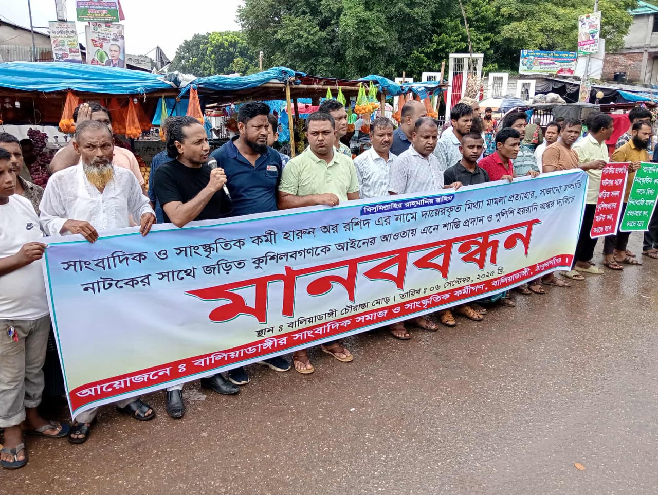 শনিবার ৬-ই সেপ্টেম্বর দুপুরে বালিয়াডাঙ্গী চৌরাস্তায় সাংবাদিক সমাজ ও সাংস্কৃতিক কর্মীগণ এ কর্মসূচীর আয়োজন করে।