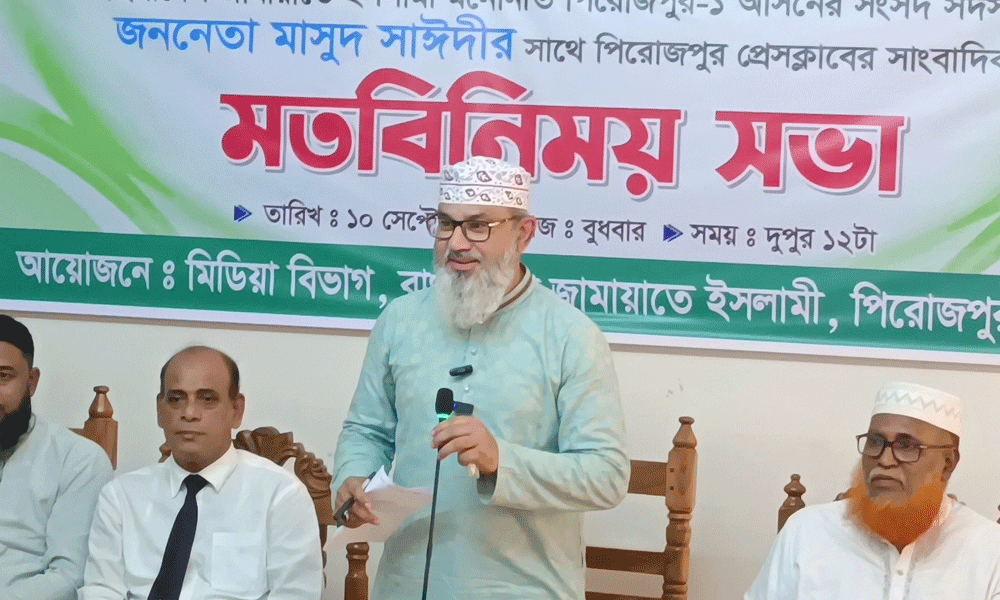 বুধবার (১০ সেপ্টেম্বর) দুপুরে জেলা জামায়াতের মিডিয়া বিভাগের আয়োজনে পিরোজপুর প্রেসক্লাব মিলনায়তনে স্থানীয় সাংবাদিকদের সঙ্গে মতবিনিময় সভা এ কথা বলেন তিনি।