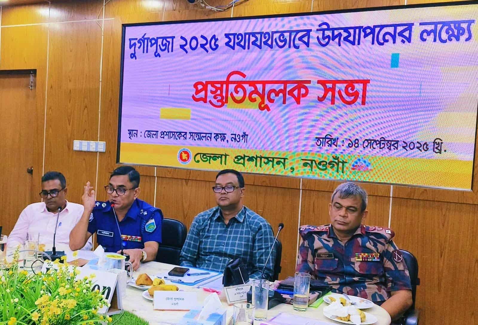 আলোচনা সভায় নওগাঁ জেলার সার্বিক আইনশৃঙ্খলা বিষয়ে এবং আসন্ন শারদীয় দুর্গাপূজা ২০২৫ উপলক্ষে মাঠ পর্যায়ের পরিস্থিতি এবং সার্বিক গুরুত্বপূর্ণ বিষয় নিয়ে পূজা উদযাপন কমিটির জেলা এবং উপজেলা পর্যায়ের সম্মানিত সভাপতি এবং সেক্রেটারিদের সাথে আলোচনা করা হয়।