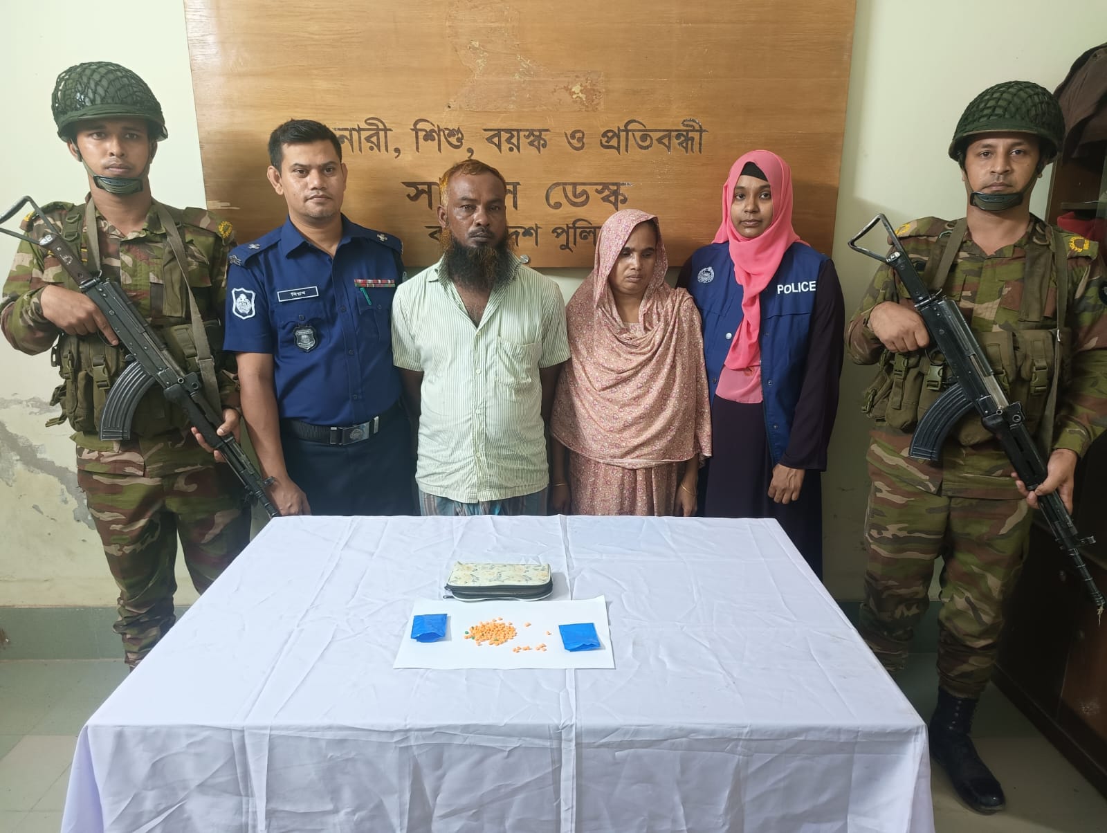 ১৮ ই সেপ্টেম্বর বৃহস্পতিবার রাতে গোপন সংবাদের ভিত্তিতে ফেনী জেলার ফুলগাজী উপজেলার জিএম হাট এলাকায় যৌথ বাহিনীর অভিযান চালিয়ে ১৫০ পিস ইয়াবা সহ স্বামী-স্ত্রী দুজন কে তাদের নিজ বসত ঘর থেকে আটক করেছেন।