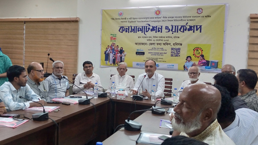 শিশু কিশোর-কিশোরী ও নারী উন্নয়নে সচেতনতামূলক প্রচার কার্যক্রম "শীর্ষক প্রকল্পের আওতায় ইউনিসেফ বাংলাদেশ এর আর্থিক সহায়তায় টাইফয়েড ভ্যাক্সিনেশন ক্যাম্পেইন ২০২৫ বিষয়ক মিডিয়াকর্মীদের অংশ গ্রহনে কনসালটেশন ওয়ার্কশপ অনুষ্ঠিত হয়েছে৷ জেলা তথ্য অফিস হবিগঞ্জ কর্তৃক আয়োজিত ২১ সেপ্টেম্বর রবিবার বেলা ৩টায় হবিগঞ্জ সিভিল সার্জন কার্যালয় সভাকক্ষে উক্ত কনসালটেশন ওয়ার্কশপ অনুষ্ঠিত হয়৷