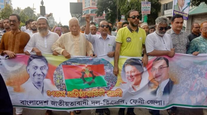 সোমবার ( ১ সেপ্টেম্বর) বিকেল ৩ টায় ফেনী প্রেস ক্লাব প্রাঙ্গনে বাংলাদেশ জাতীয়তাবাদী দল ( বিএনপি) এর ৪৭ তম প্রতিষ্ঠা বার্ষিকী উপলক্ষে ফেনী শহরের প্রধান প্রধান সড়কে বর্ণাঢ্য র্যালি ও
