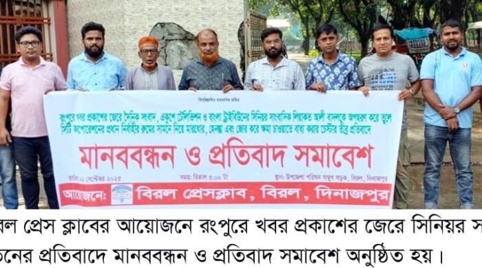 রংপুরে খবর প্রকাশের জেরে দৈনিক সংবাদ, একুশে টেলিভিশন ও বাংলা ট্রিবিউনের সিনিয়র সাংবাদিক লিয়াকত আলী বাদলকে অপহরণ করে তুলে সিটি করপোরেশনের প্রধান নির্বাহীর রুমের সামনে নিয়ে মারধর, হেনস্তা এবং জোর