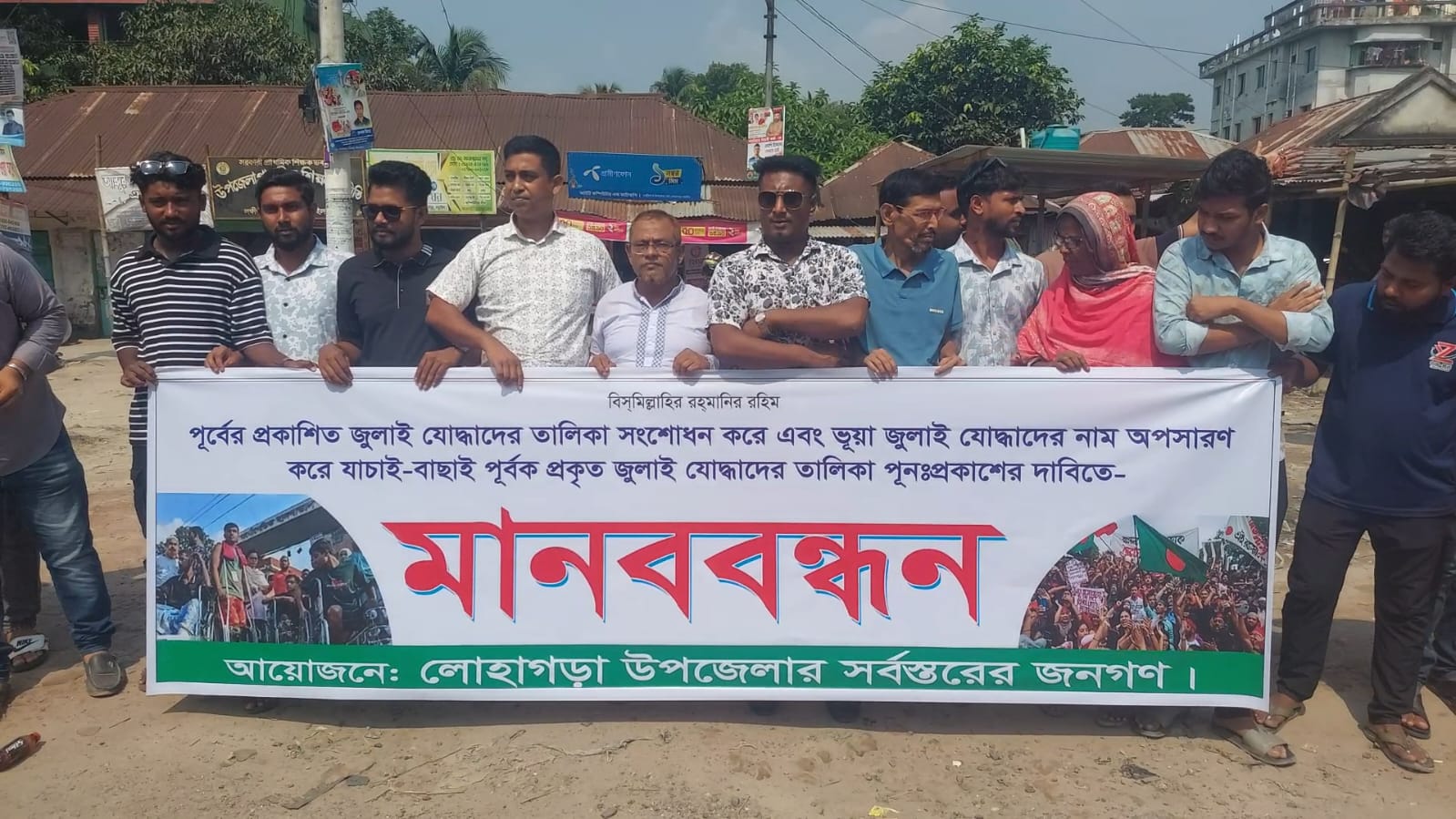লোহাগড়ায় জুলাই যোদ্ধাদের প্রকৃত তালিকা প্রনয়নের দাবীতে মানববন্ধন ও স্মারকলিপি প্রদান