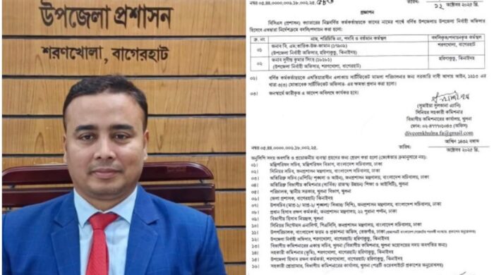 বাগেরহাটের শরণখোলার উপজেলা নির্বাহী কর্মকর্তা (ইউএনও) সুদীপ্ত কুমার সিংহকে দুর্নীতি, চাঁদাবাজি ও জুলাই অভ্যুত্থানে ছাত্র-জনতার বিপক্ষে অবস্থান নেয়ার অভিযোগে হরিণাকুন্ডু উপজেলায় বদলি করা হয়েছে। ইউএনওর বদলির খবর ছড়িয়ে পড়ার পর