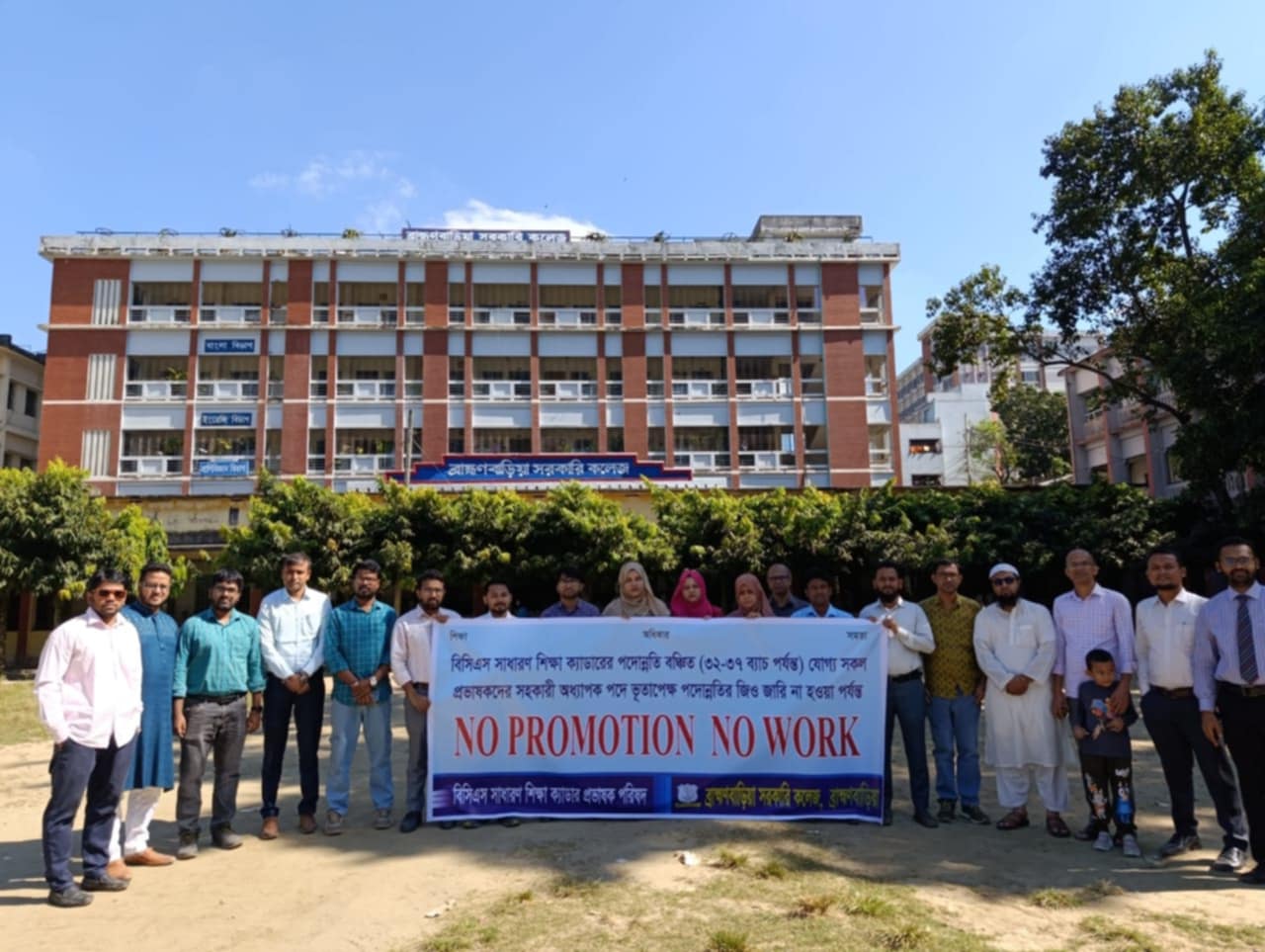 ১৬ নভেম্বর রোজ রোববার থেকে সারাদেশে সকল সরকারি কলেজে No Promotion, No Work কর্মসূচি পালন করছে ৩২ থেকে ৩৭ বিসিএস সাধারণ শিক্ষা ক্যাডারের পদোন্নতি বঞ্চিত প্রভাষকবৃন্দ। এবং তাদের সাথে একমত পোষণ করে কর্ম বিরতি পালন করছে অন্যান্য ব্যাচের প্রভাষক ও কর্মকর্তাবৃন্দ। ৫ বছরের পদোন্নতি ১২ বছরে হচ্ছে না শিক্ষা ক্যাডারের প্রভাষক পর্যায়ের কর্মকর্তারা। বিগত ১২ বছর ধরে বিসিএস (সাধারণ শিক্ষা) ক্যাডারের প্রভাষক পদে কর্মরত শত শত কর্মকর্তা পদোন্নতি থেকে বঞ্চিত রয়েছেন।