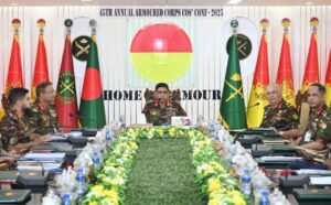 ঢাকা, ২৬ নভেম্বর ২০২৫ (বুধবার): আজ বগুড়া সেনানিবাসস্থ আর্মার্ড কোর সেন্টার এন্ড স্কুল (এসিসিএন্ডএস) এ সাঁজোয়া কোরের বাৎসরিক অধিনায়ক সম্মেলন-২০২৫ অনুষ্ঠিত হয়। অনুষ্ঠানে প্রধান অতিথি হিসেবে উপস্থিত ছিলেন সেনাবাহিনী প্রধান জেনারেল ওয়াকার-উজ-জামান, এসবিপি, ওএসপি, এসজিপি, পিএসসি। সেনাবাহিনী প্রধান এসিসিএন্ডএস এ পৌঁছালে তাঁকে জিওসি আর্মি ট্রেনিং এন্ড ডকট্রিন কমান্ড; সাঁজোয়া কোর এর কর্নেল কমান্ড্যান্ট; জিওসি ১১ পদাতিক ডিভিশন ও এরিয়া কমান্ডার বগুড়া এরিয়া এবং কমান্ড্যান্ট এসিসিএন্ডএস অভ্যর্থনা জানান।
