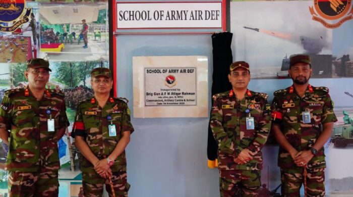 ঢাকা, ৫ নভেম্বর ২০২৫ (বুধবার): গত ৪ নভেম্বর ২০২৫ তারিখে চট্টগ্রামের হালিশহরে বাংলাদেশ সেনাবাহিনীর আর্টিলারি সেন্টার অ্যান্ড স্কুলের বিদ্যমান সাংগঠনিক কাঠামোর অধীনে ‘স্কুল অব আর্মি এয়ার ডিফেন্স’ -এর স্বতন্ত্র কার্যক্রমের