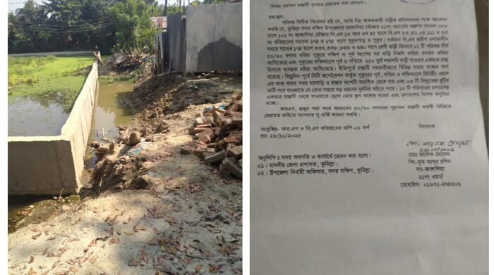 কুমিল্লা জেলার সদর দক্ষিণ উপজেলার ২১ নং ওয়ার্ডের ১০২ নং জাঙ্গালিয়া মৌজায় অবস্থিত ঐতিহ্যবাহী একটি পুকুরকে ঘিরে চলমান বিরোধের জেরে স্থানীয়দের চলাচলের একমাত্র রাস্তা সংস্কার কাজে বাধা দিচ্ছেন কথিত ভূমিদস্যু