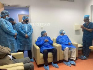 হাসপাতালে পৌঁছালে বিএনপির মহাসচিব মির্জা ফখরুল ইসলাম আলমগীর, বেগম খালেদা জিয়ার ব্যক্তিগত চিকিৎসক অধ্যাপক ডা. এ. জে. এম. জাহিদ হোসেন, অধ্যাপক ডা. শাহাবুদ্দিন তালুকদার, খালেদা জিয়ার ছোট ছেলের স্ত্রী সৈয়দা শর্মিলা রহমান এবং ছোট ভাই শামীম এসকান্দার প্রধান উপদেষ্টাকে রিসিভ করেন।