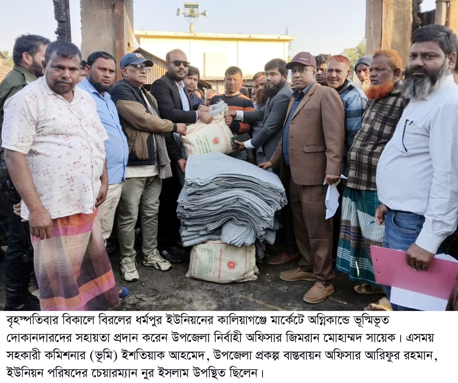 বিরল উপজেলার ০৮নং ধর্মপুর ইউনিয়নের কালিয়াগঞ্জ বাজারে অগ্নিকান্ডে ক্ষতিগ্রস্থদের সহায়তা প্রদান করেছে উপজেলা প্রশাসন। বুধবার রাত সাড়ে ১২ টায় প্রায় ১৫ টি দোকান ঘর আগুনে ভূস্মিভূত হওয়ার পর উপজেলা প্রশাসনের পক্ষ হতে সহায়তা প্রদানে কিছুটা স্বস্তি ফিরেছে।