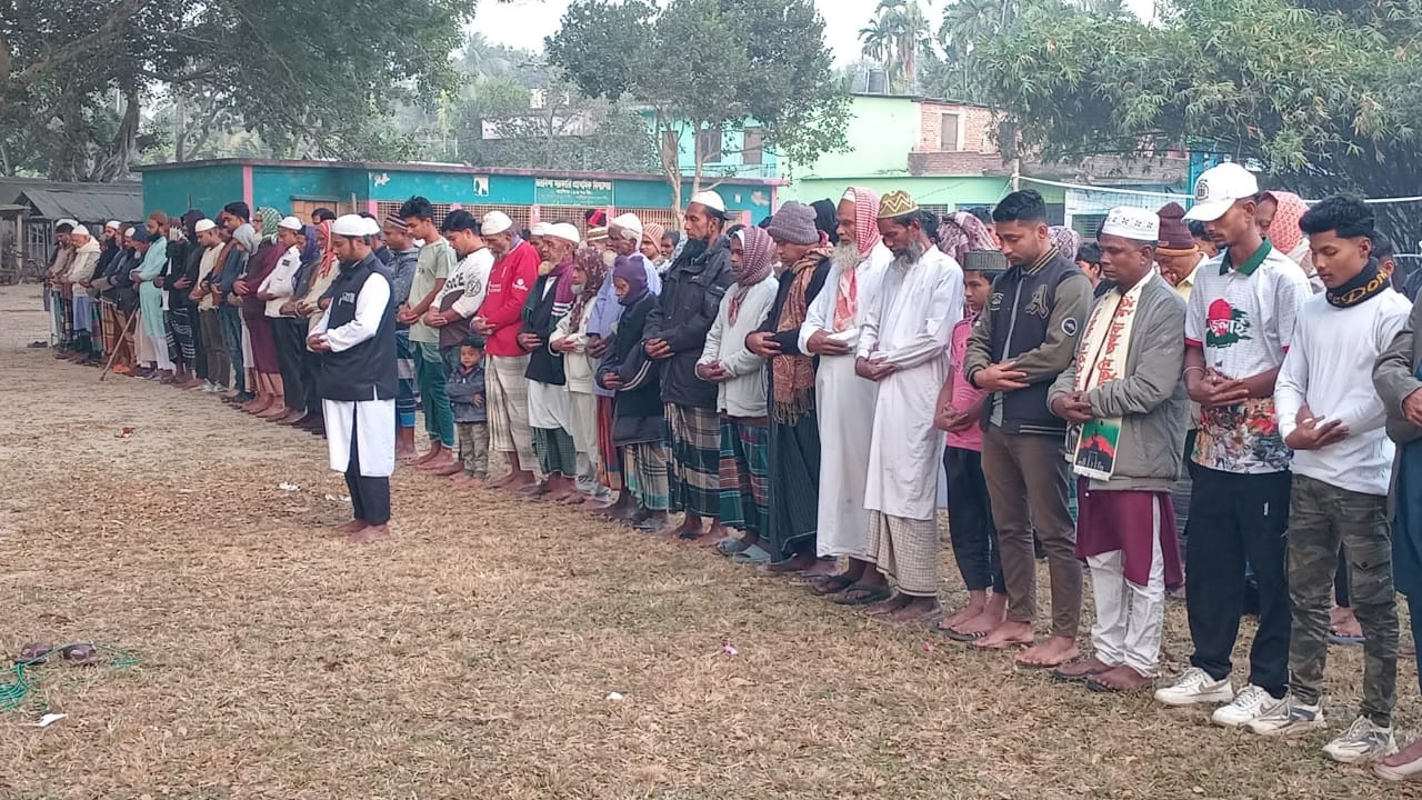 নামাজে ইমামতি করেন-মাওলানা কাজী কামরুল হাসান। পরে হাদির খুনিদের দ্রুত গ্রেফতার ও বিচার দাবিতে বিক্ষোভ মিছিল অনুষ্ঠিত হয়।