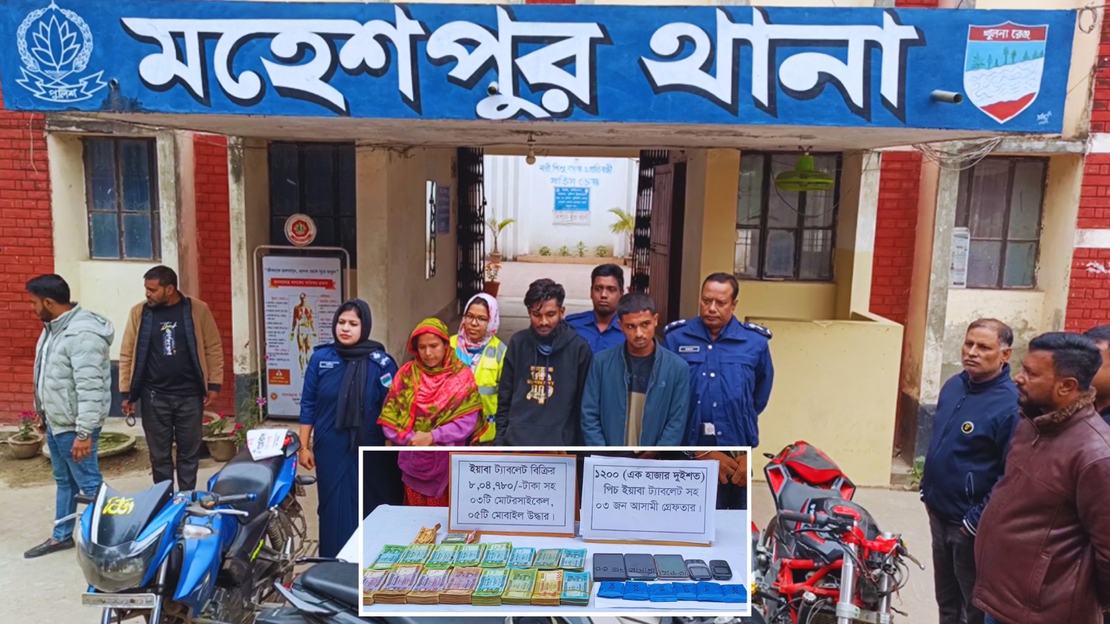 মহেশপুরে পুলিশের বড় মাদকবিরোধী অভিযান: ১২০০ ইয়াবা, ৮ লাখ টাকা ও ৩ মোটরসাইকেল জব্দ, আটক ৩