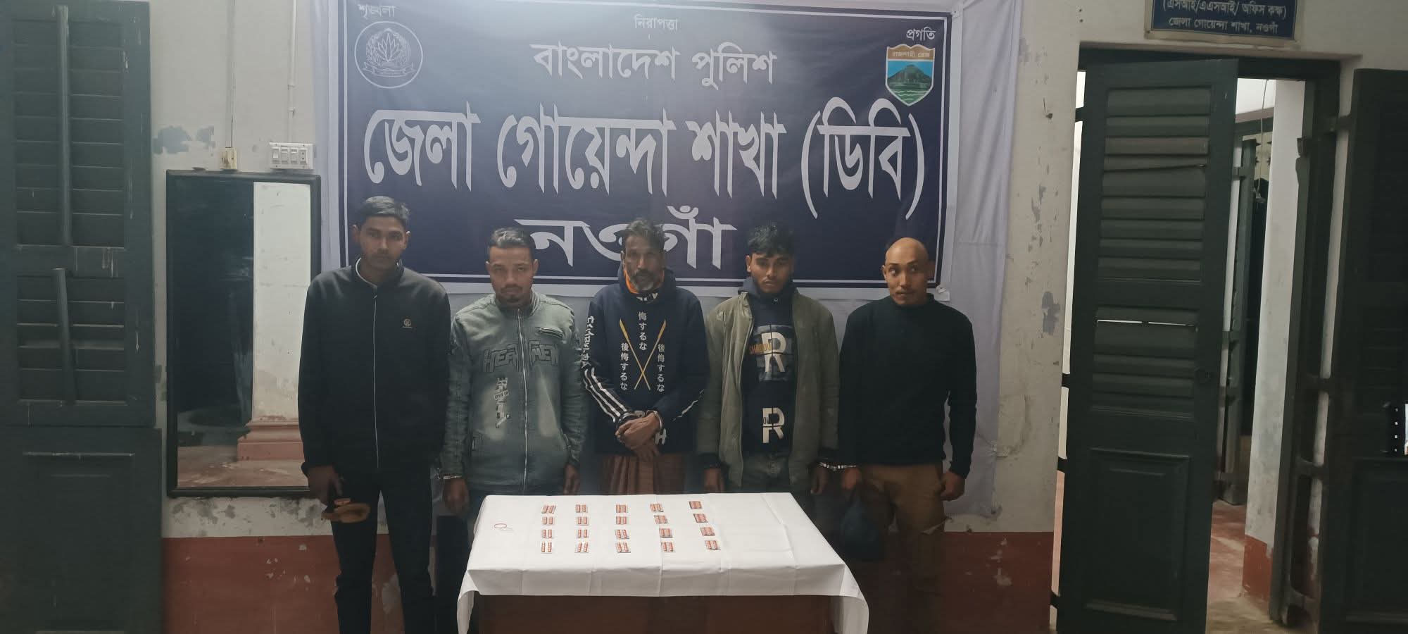 নওগাঁ মাদক বিরোধী অভিযানে ২০০ পিচ ট্যাপেন্টাডল সহ ০৫ জন গ্রেফতার