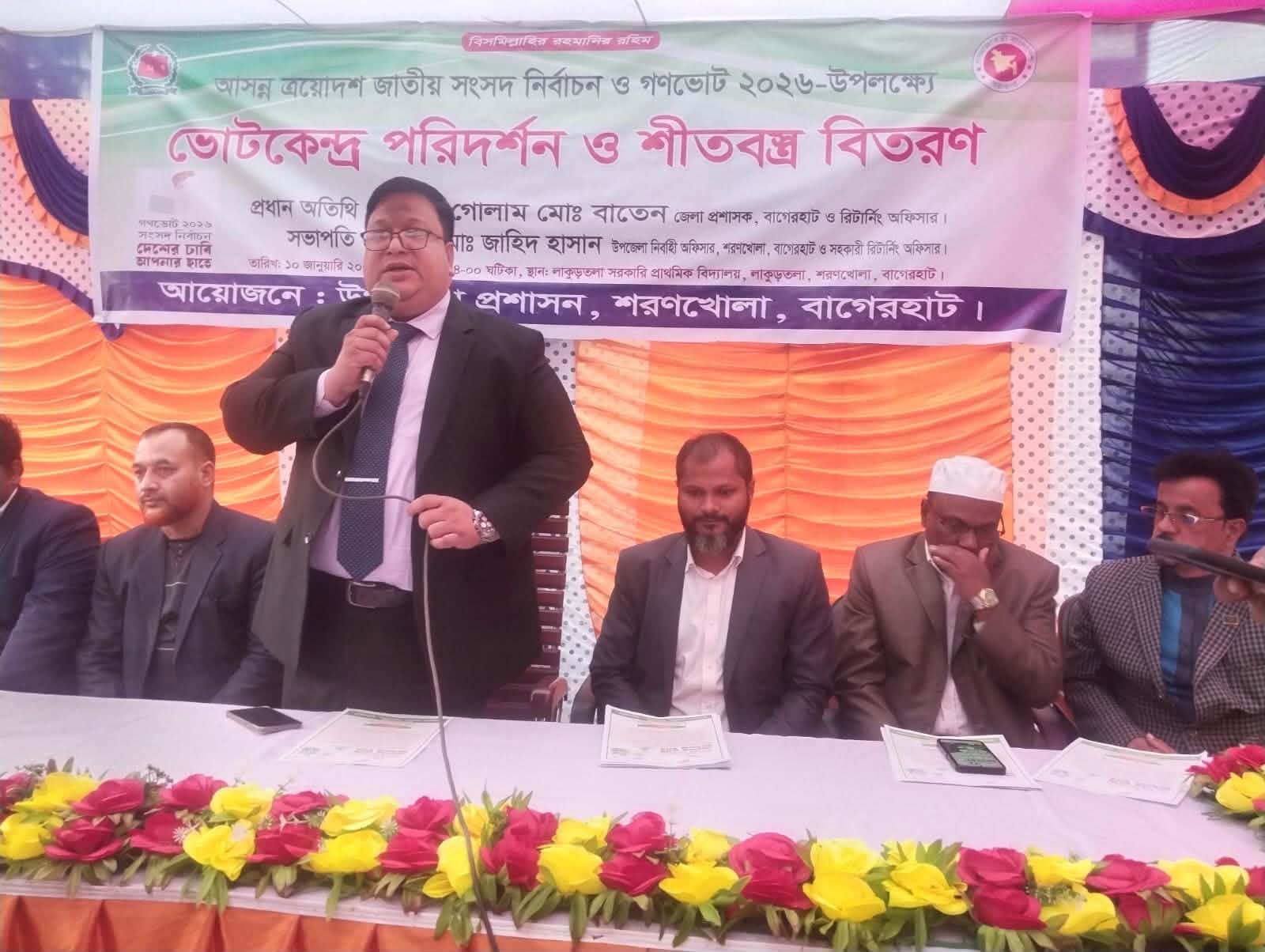 শরণখোলায় জেলা প্রশাসকের ভোটকেন্দ্র পরিদর্শন ও শীতার্তদের মাঝে শীতবস্ত্র বিতরণ