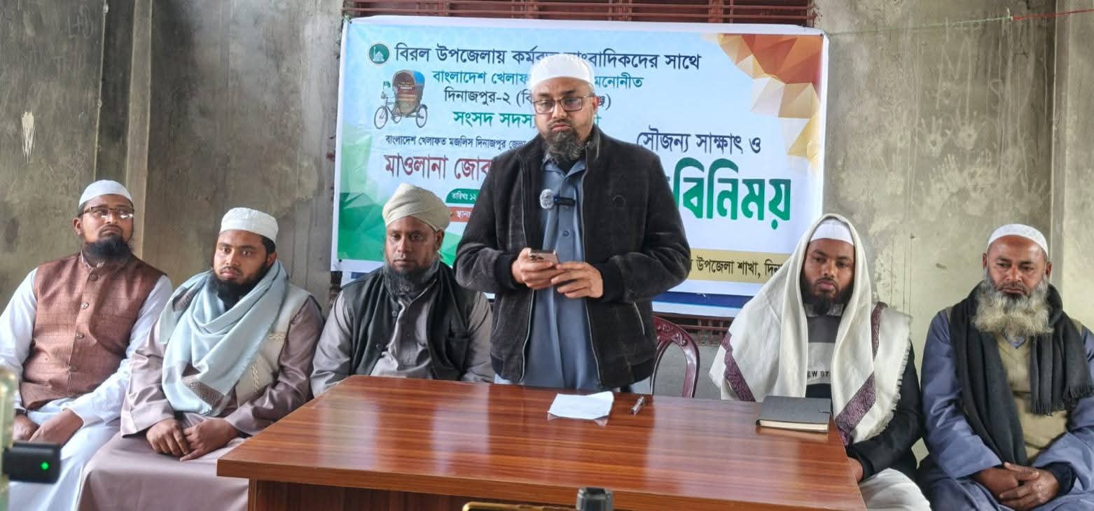 দিনাজপুরের বিরল উপজেলায় কর্মরত সাংবাদিকদের সাথে বাংলাদেশ খেলাফত মজলিস মনোনীত দিনাজপুর-২ (বিরল–বোচাগঞ্জ) আসনের সংসদ সদস্য পদপ্রার্থী এবং বাংলাদেশ খেলাফত মজলিস দিনাজপুর জেলা শাখার সাধারণ সম্পাদক মাওলানা জোবায়ের সাঈদের মতবিনিময় সভা অনুষ্ঠিত হয়েছে।