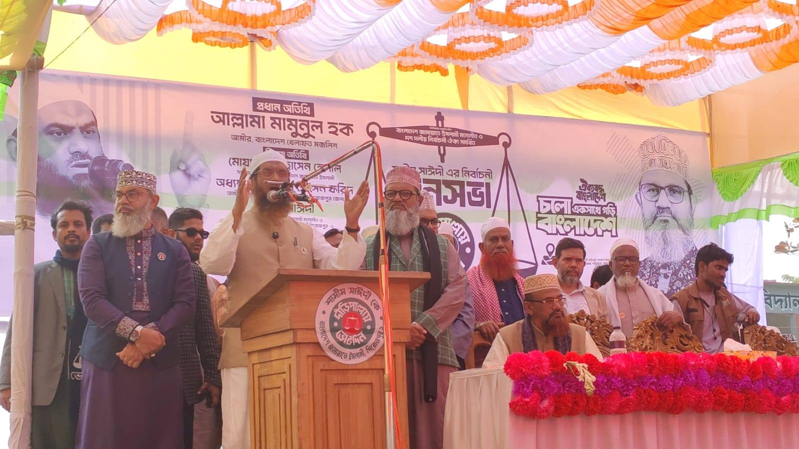 এছাড়া আগামী ১২ ফেব্রুয়ারি অনুষ্ঠিত হতে যাওয়া ত্রয়োদশ জাতীয় সংসদ নির্বাচনে কোন ধরনের ইঞ্জিনিয়ারিং করার চেষ্টা না করতেও প্রশাসনের প্রতি কঠোর হুশিয়ারি দেন মামুনুল হক। এছাড়া আগামীতে ইসলামী রাষ্ট্র গঠনের লক্ষে তিনি ১০ দলীয় জোট মনোনীত প্রার্থীকে ভোট দেওয়ার আহ্বান জানান।