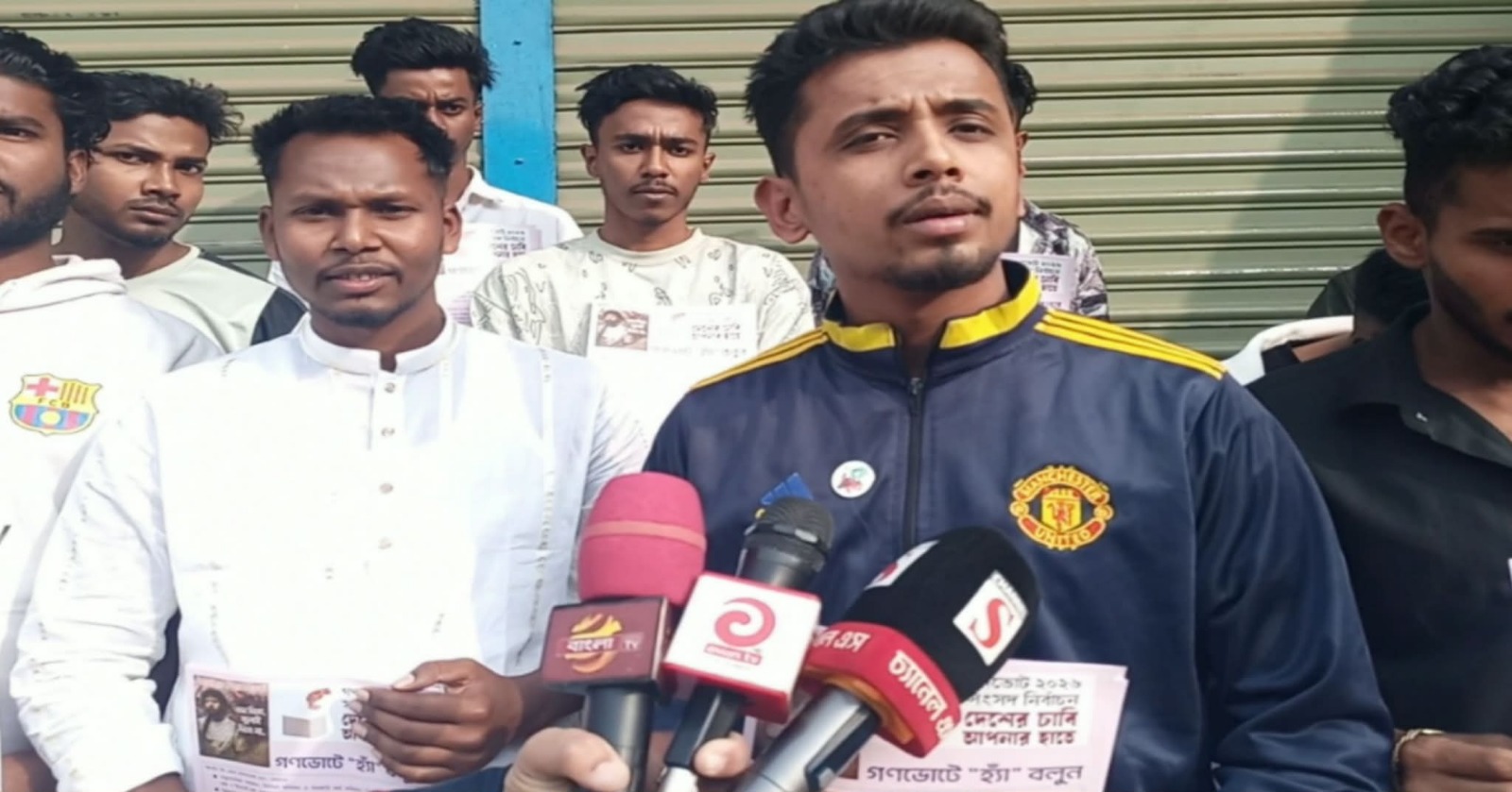 ২০২৬ সালের ১২ ফেব্রুয়ারি অনুষ্ঠিতব্য সাধারণ নির্বাচনকে সামনে রেখে ভোটারদের সচেতন করতে এবং গণভোটে ‘হ্যাঁ’ বলার আহ্বান জানিয়ে সাধারণ মানুষের মাঝে লিফলেট তুলে দেন ছাত্র নেতারা।