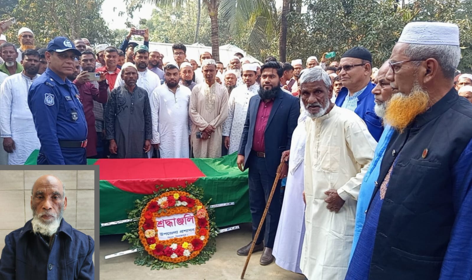সোমবার দুপুর ২ টায় উপজেলার ১০ নং রাণীপুকুর ইউনিয়নের আছুটিয়া গ্রামে মরহুমের মরদেহে শ্রদ্ধাঞ্জলি নিবেদন করে রাষ্ট্রীয় মর্যাদায় গার্ড অব অনার প্রদান শেষে নিজ বাসভবনের সম্মূখে জানাযা অনুষ্ঠিত হয় এবং জানাযা শেষে পারিবারিক কবরস্থানে দাফনকার্য্য সম্পন্ন করা হয়।