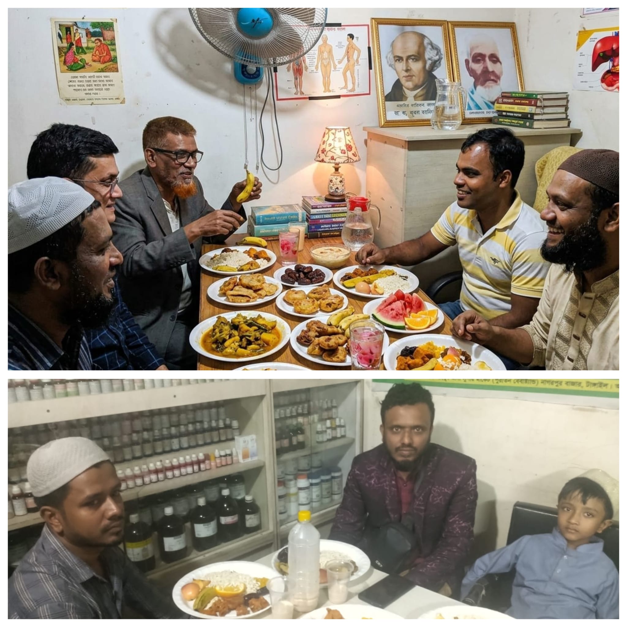 মাগরিবের আজানের সঙ্গে সঙ্গে উপস্থিত সবাই একসাথে ইফতার করেন। ইফতারে ছিল শরবত, খেজুর, ফলমূল, বুট-মুড়ি ও বিভিন্ন ঐতিহ্যবাহী খাবার।