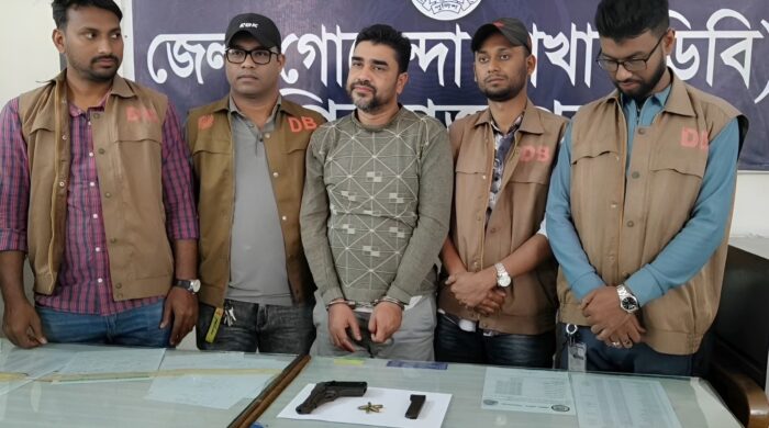 মো. শামীম হোসাইন: পিরোজপুরের ভাণ্ডারিয়া উপজেলা থেকে একটি বিদেশি পিস্তলসহ মো. আলীম খান (৪৯) নামের এক ব্যক্তিকে গ্রেপ্তার করেছে জেলা গোয়েন্দা শাখা (ডিবি) পুলিশ। মঙ্গলবার দিবাগত গভীর রাতে গোপন সংবাদের